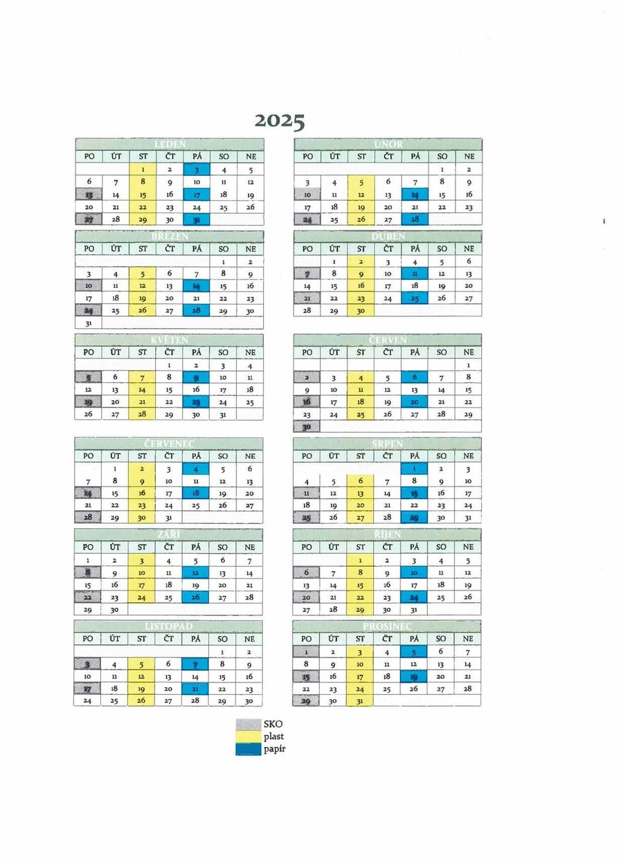 Úvod > Obec > Aktuality > Termíny svozů odpadů 2025