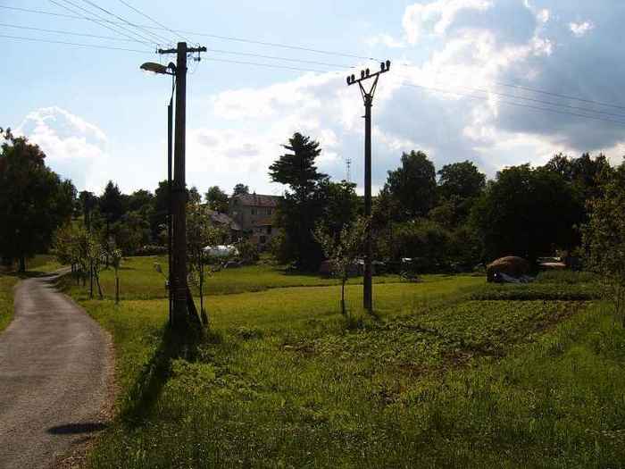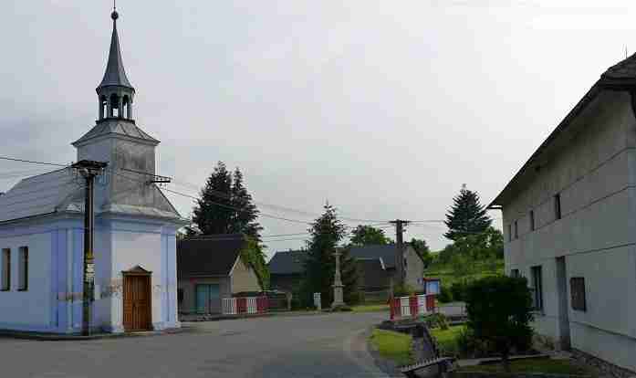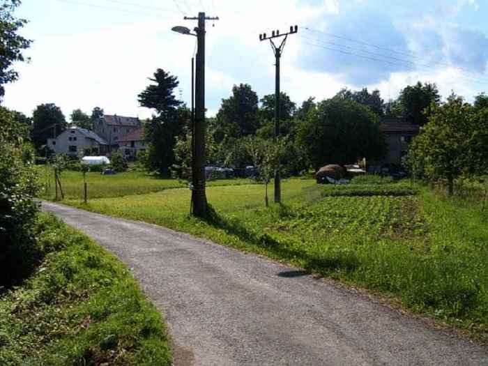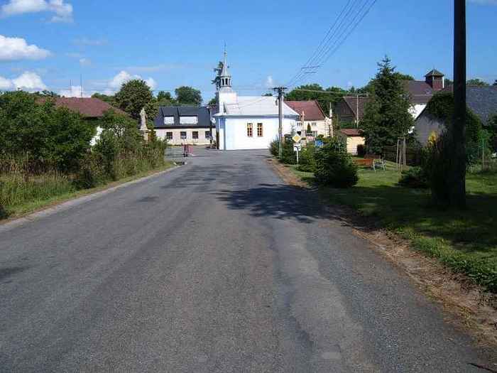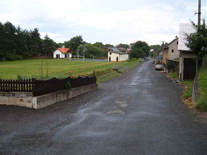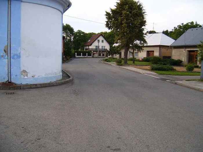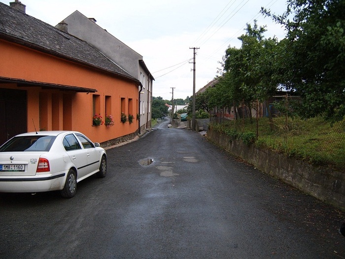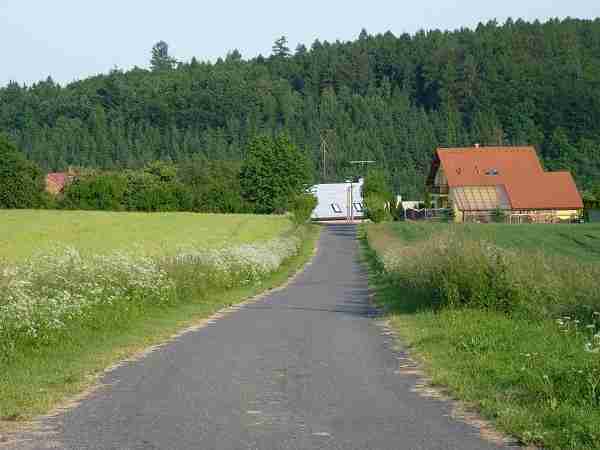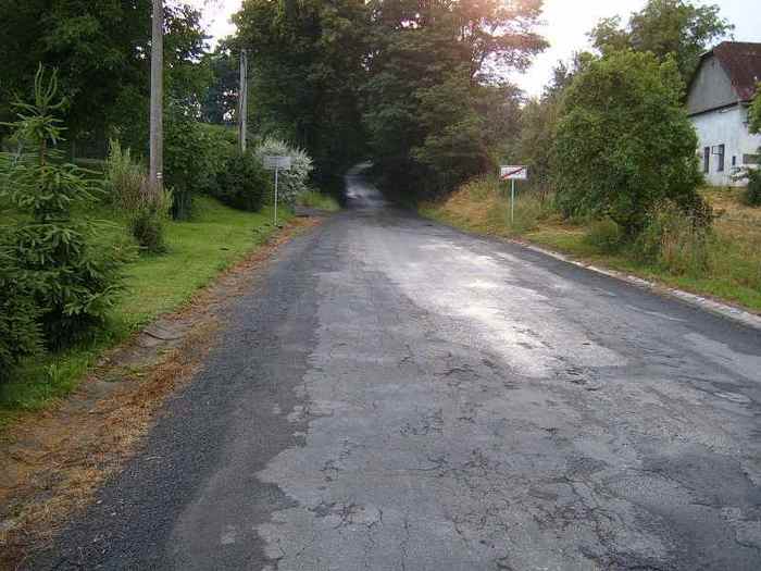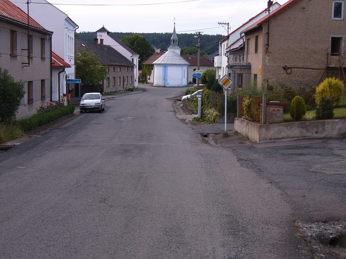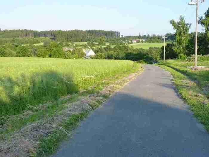 Silnice směr místní část Pančava, v pozadí Svrčov